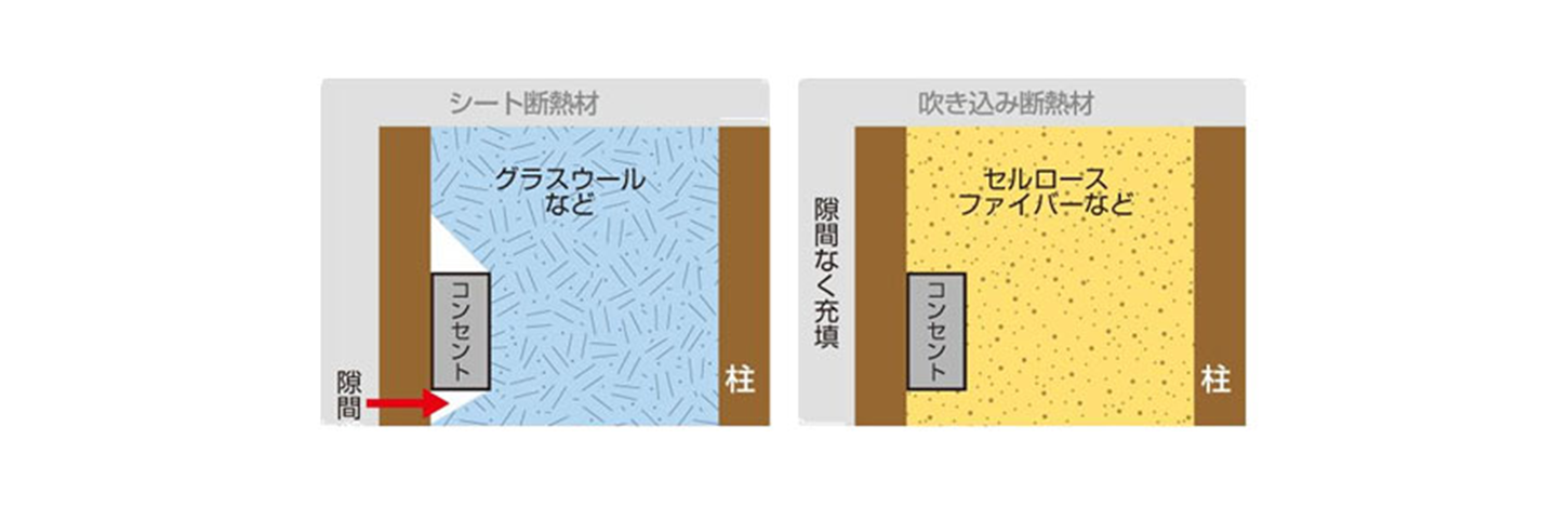 セルロースファイバーは隙間なく施工することで透湿性、吸放湿性を持った結露に強い断熱材です。