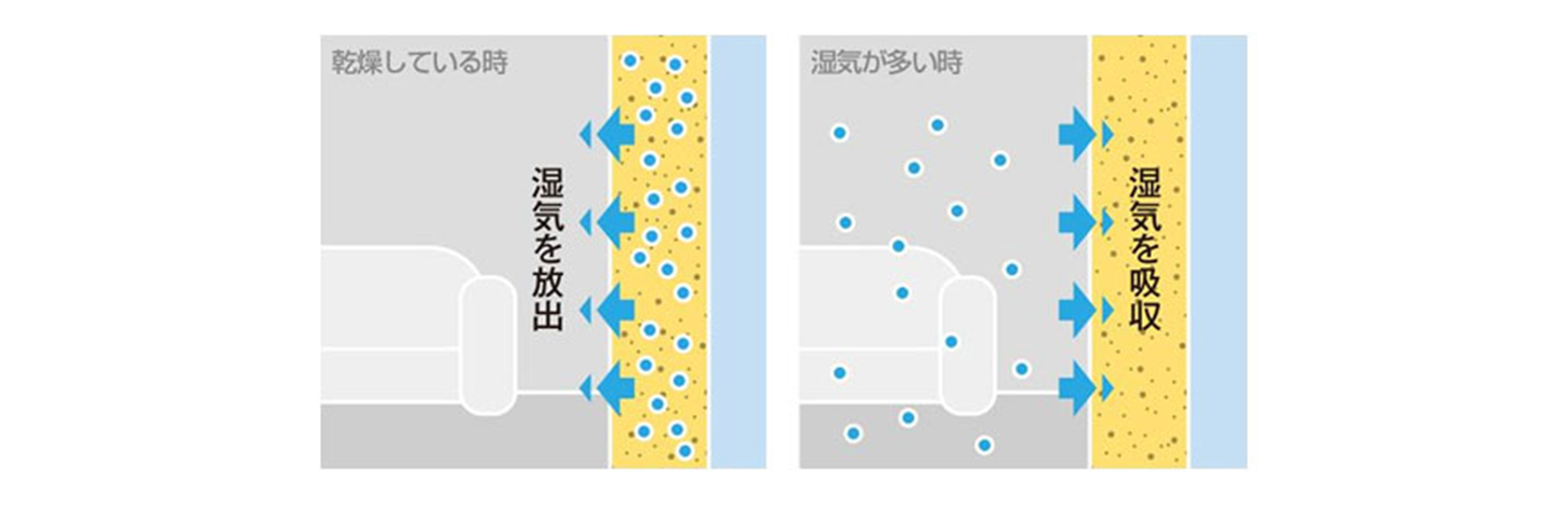 セルロースファイバーの最大の特徴は、木質繊維が持つ吸放湿性です。